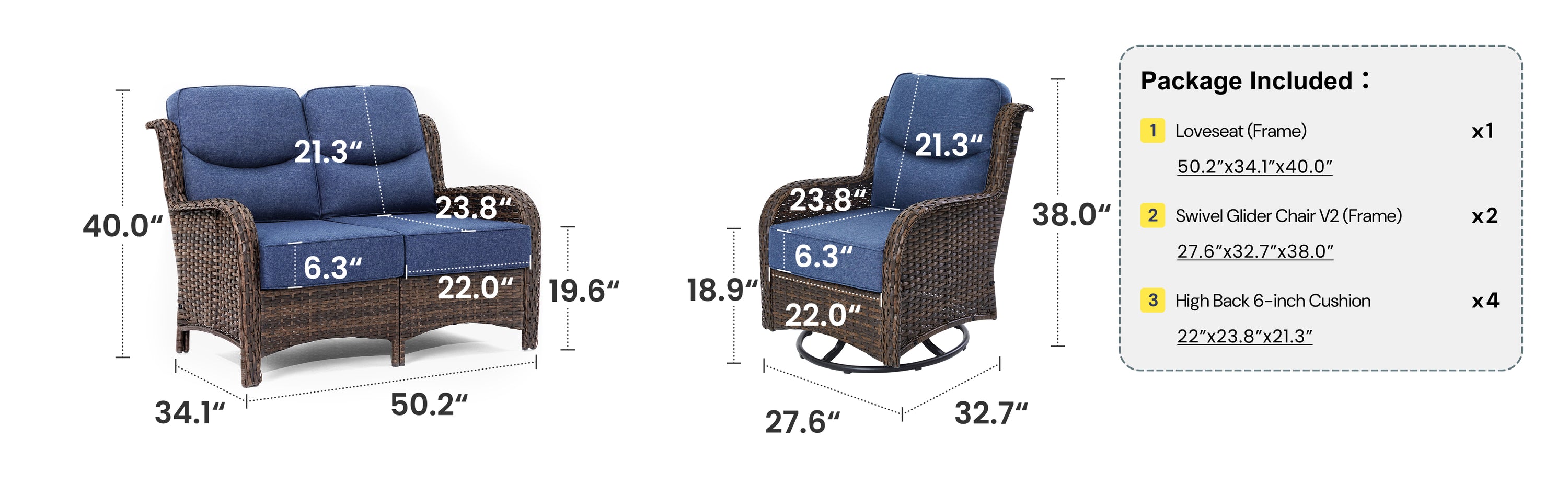 Hawthorne 4 Seater Patio Rattan Loveseat Set With Swivel Glider Chairs