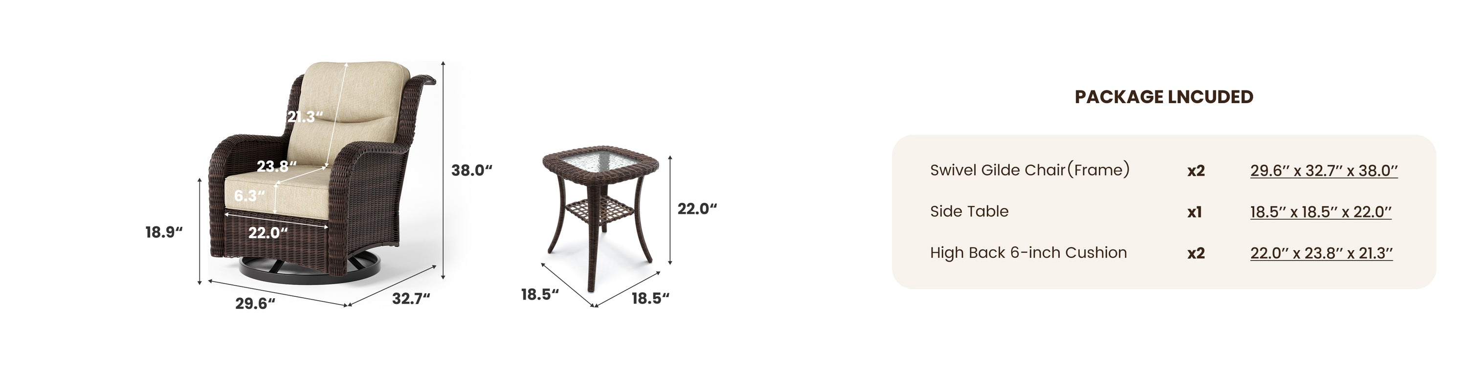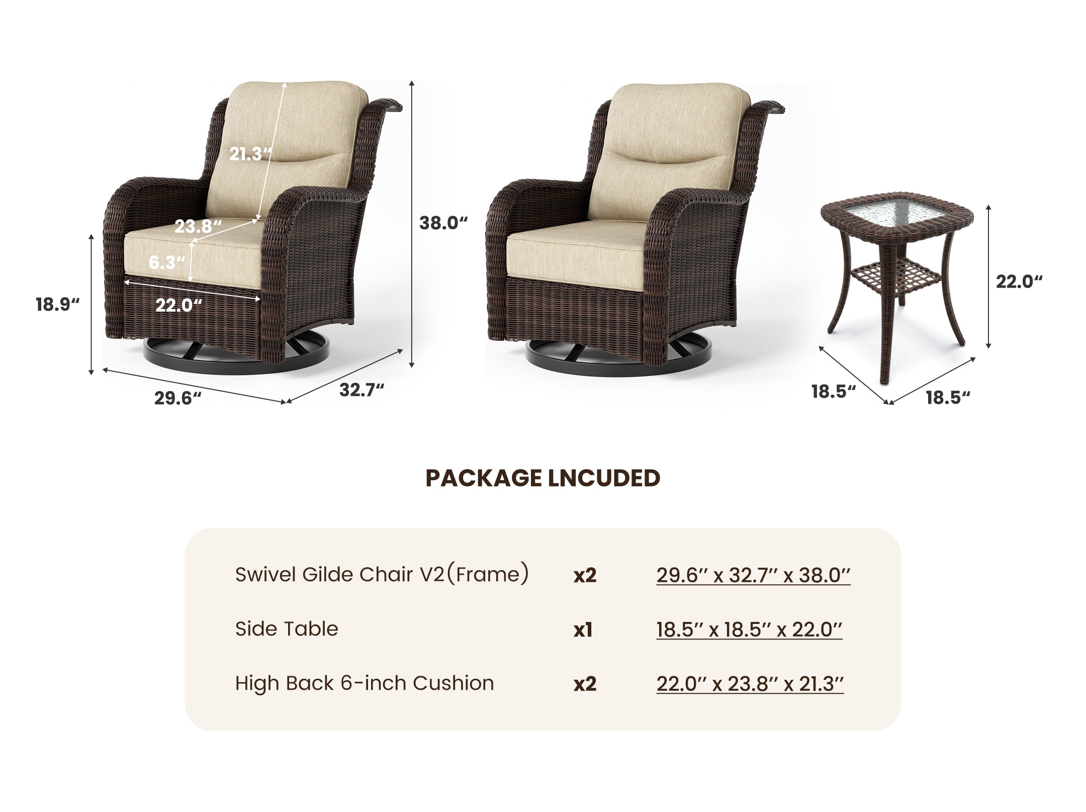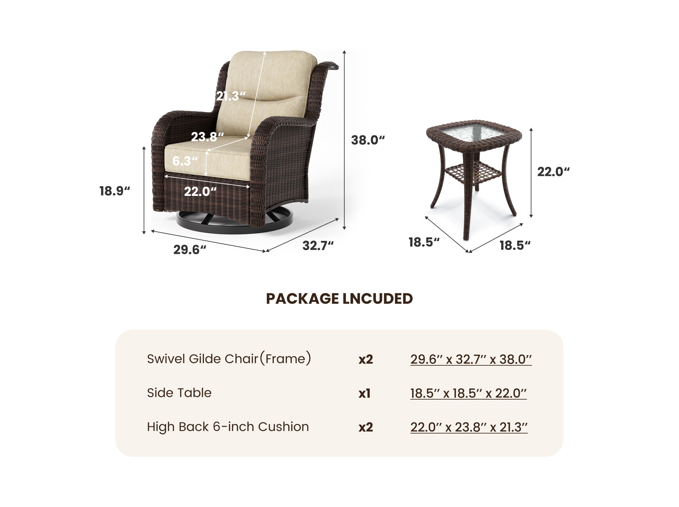 Ardenelle Luxury 3 Piece Patio Wicker Conversation Set With Side Table And Covers