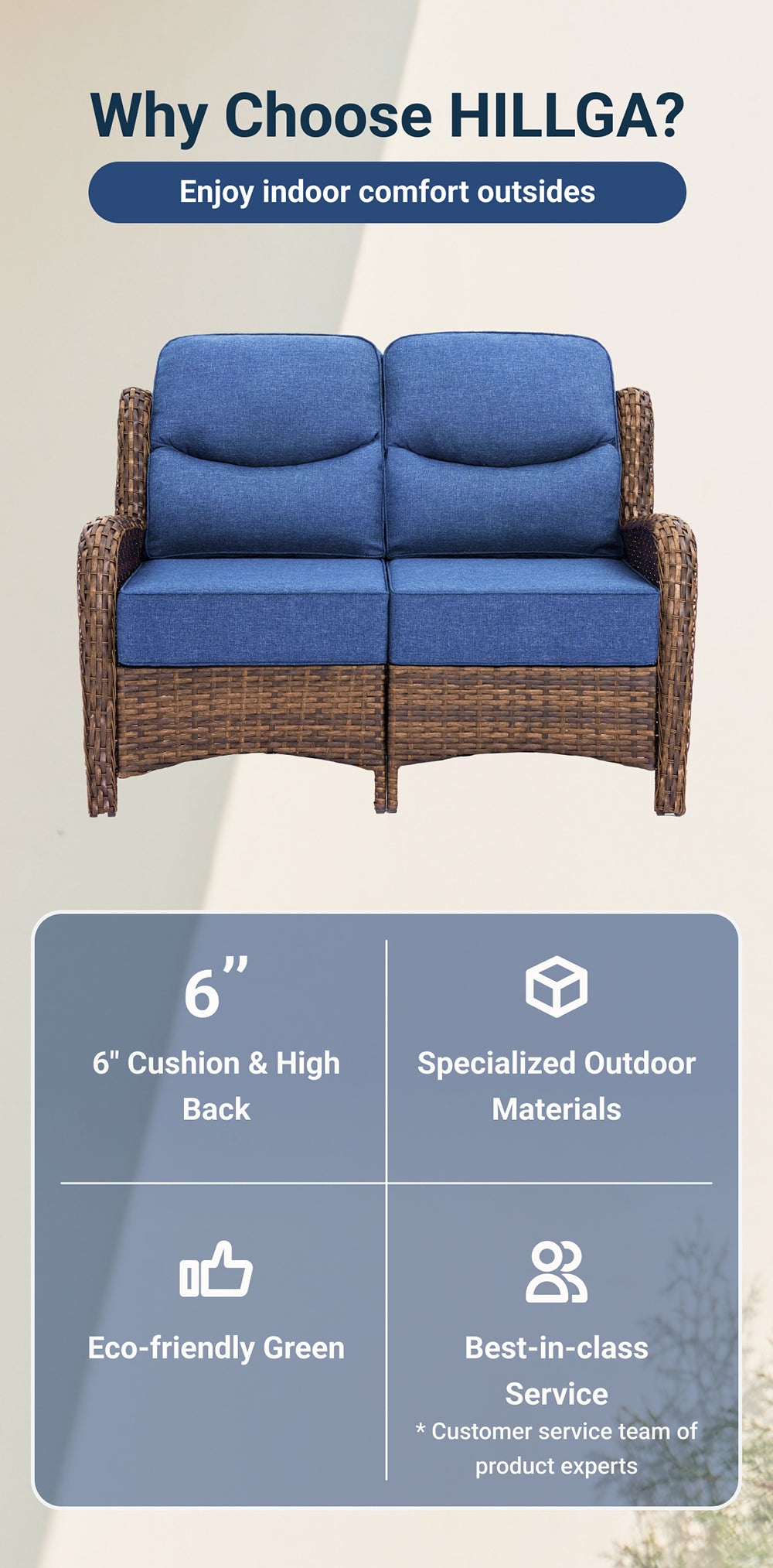 Hawthorne Patio Rattan 2 Seater Loveseat With High Back Design & 6-Inch Cushions