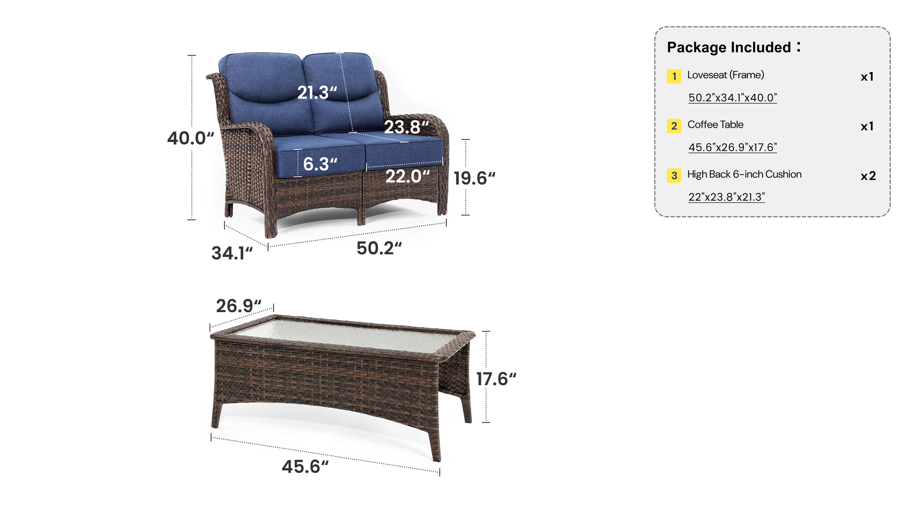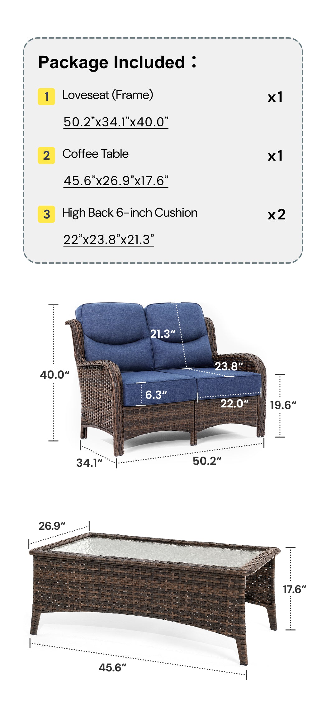 Hawthorne 2 Piece Patio Wicker Loveseat Set With Coffee Table