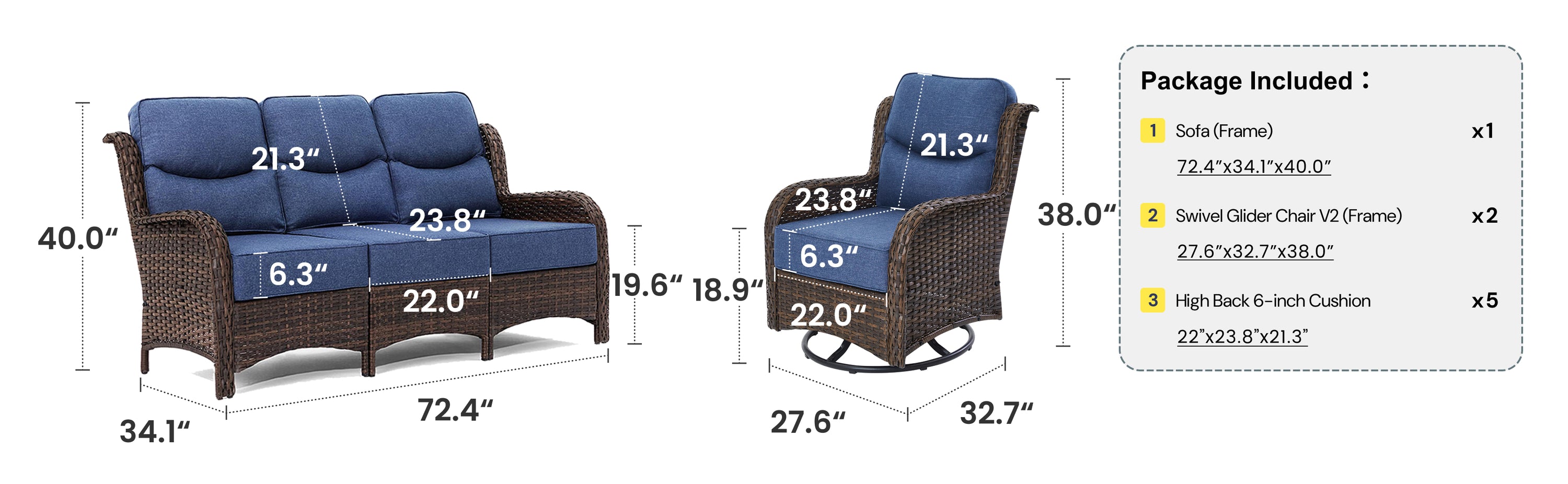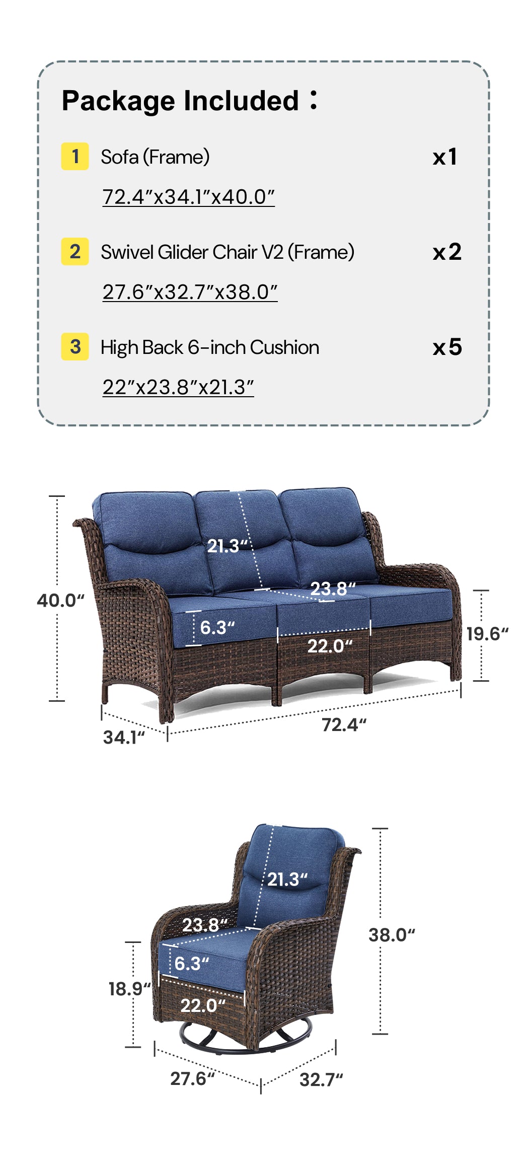 - 6-inch ultra-plush cushions with high-density 28D foam offer the perfect balance of softness and support.