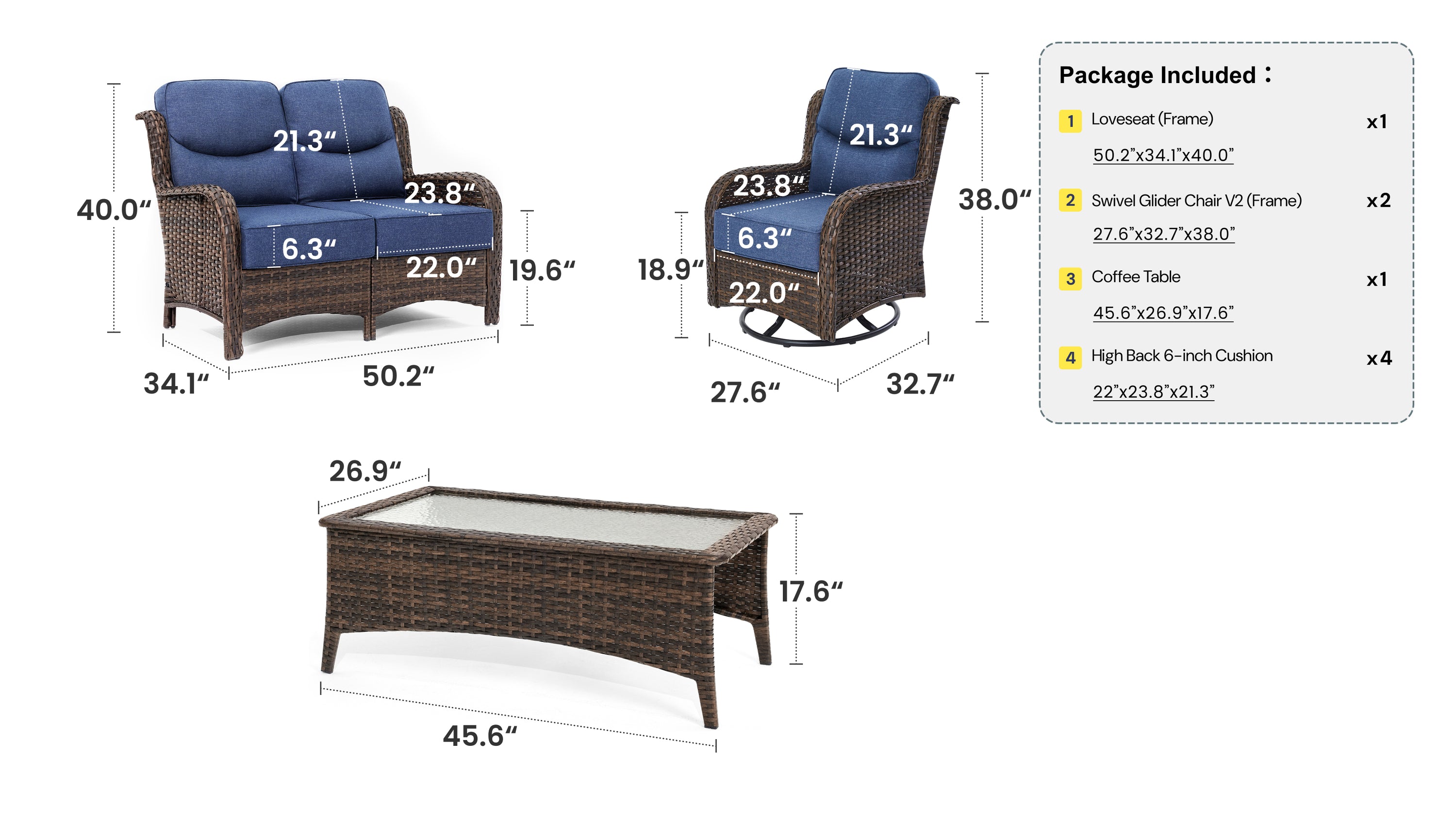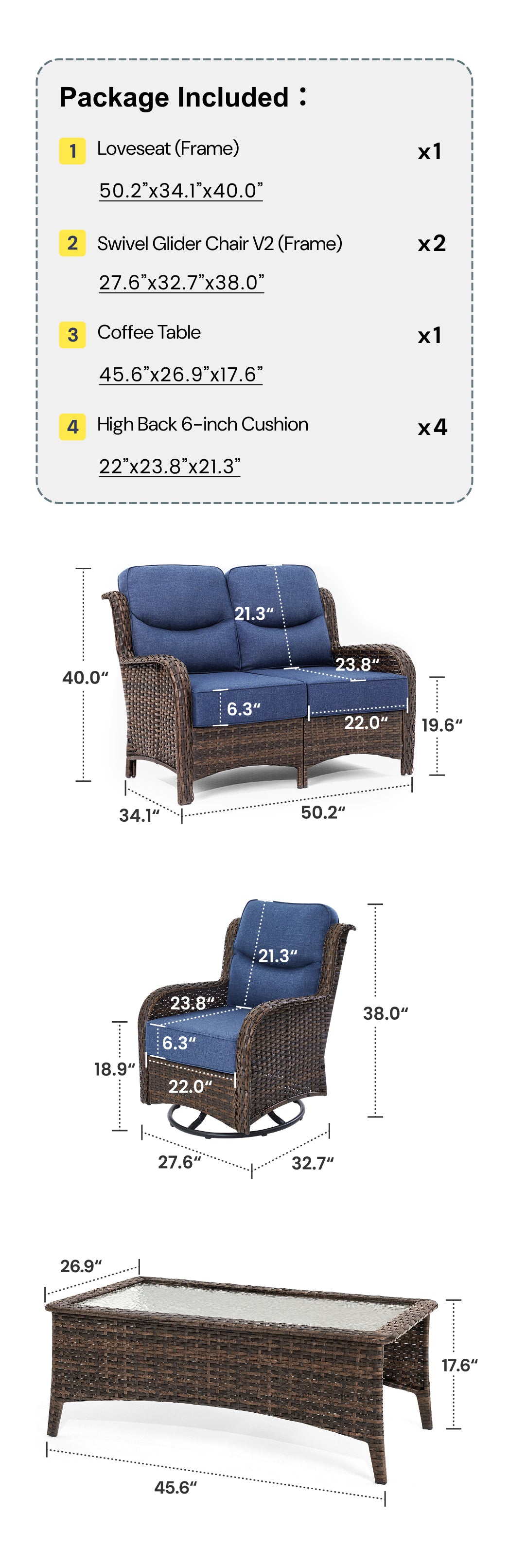 Hawthorne 4 Seater Patio Wicker Loveseat Set With Swivel Glider Chairs And Coffee Table