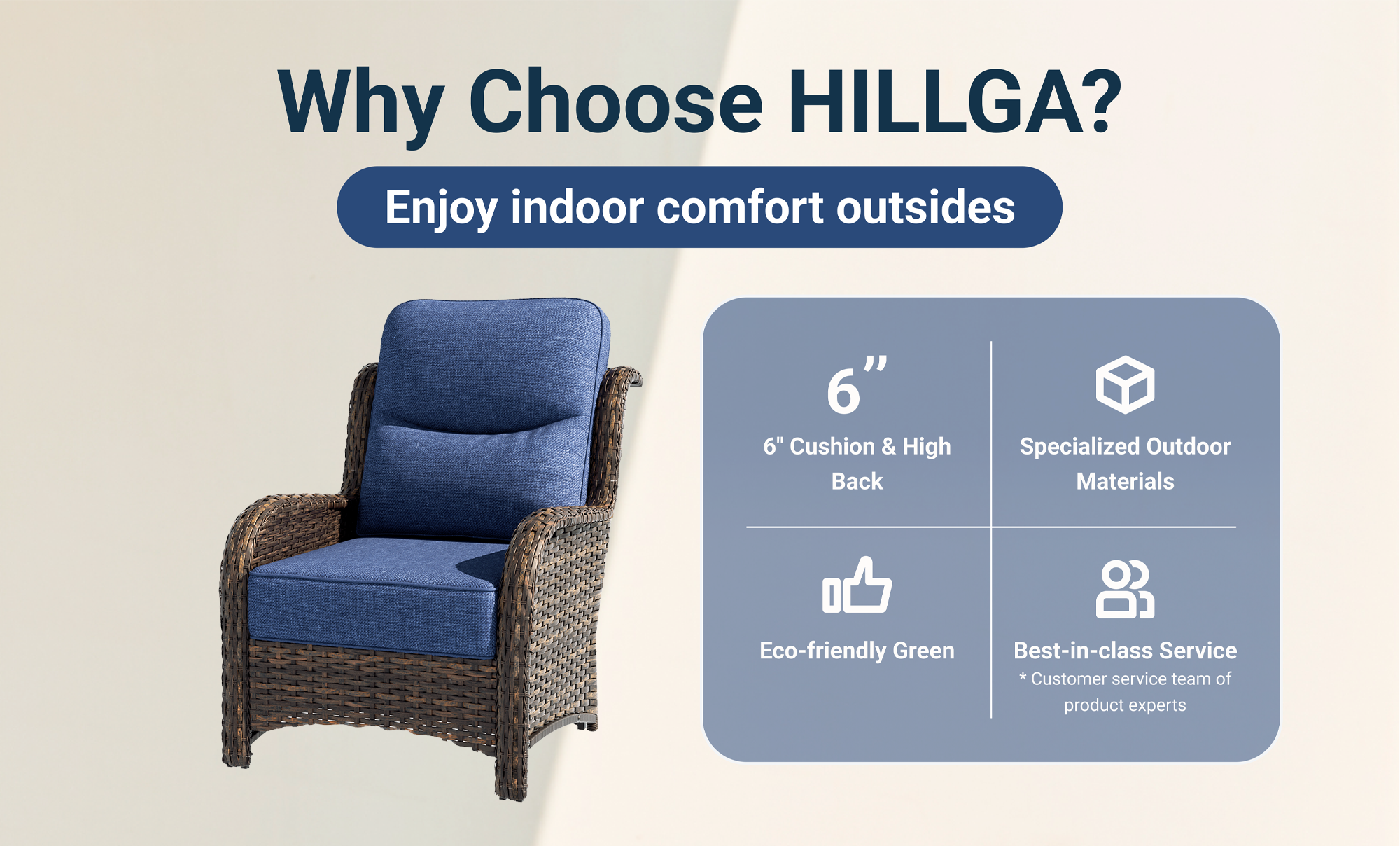 At Hillga, we take great pride in our outdoor furniture and we strive to bring you the best quality and worry-free service.