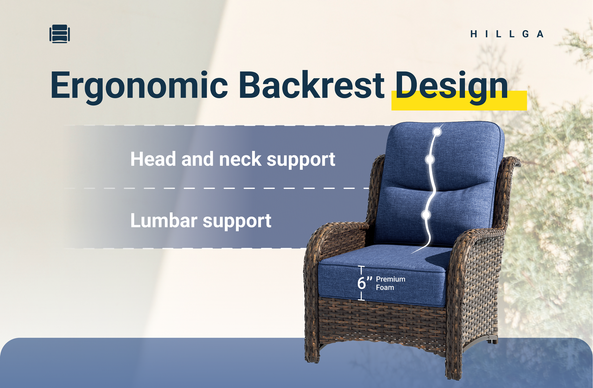- High backrest provides full shoulder and neck support, reducing fatigue during long lounging sessions.