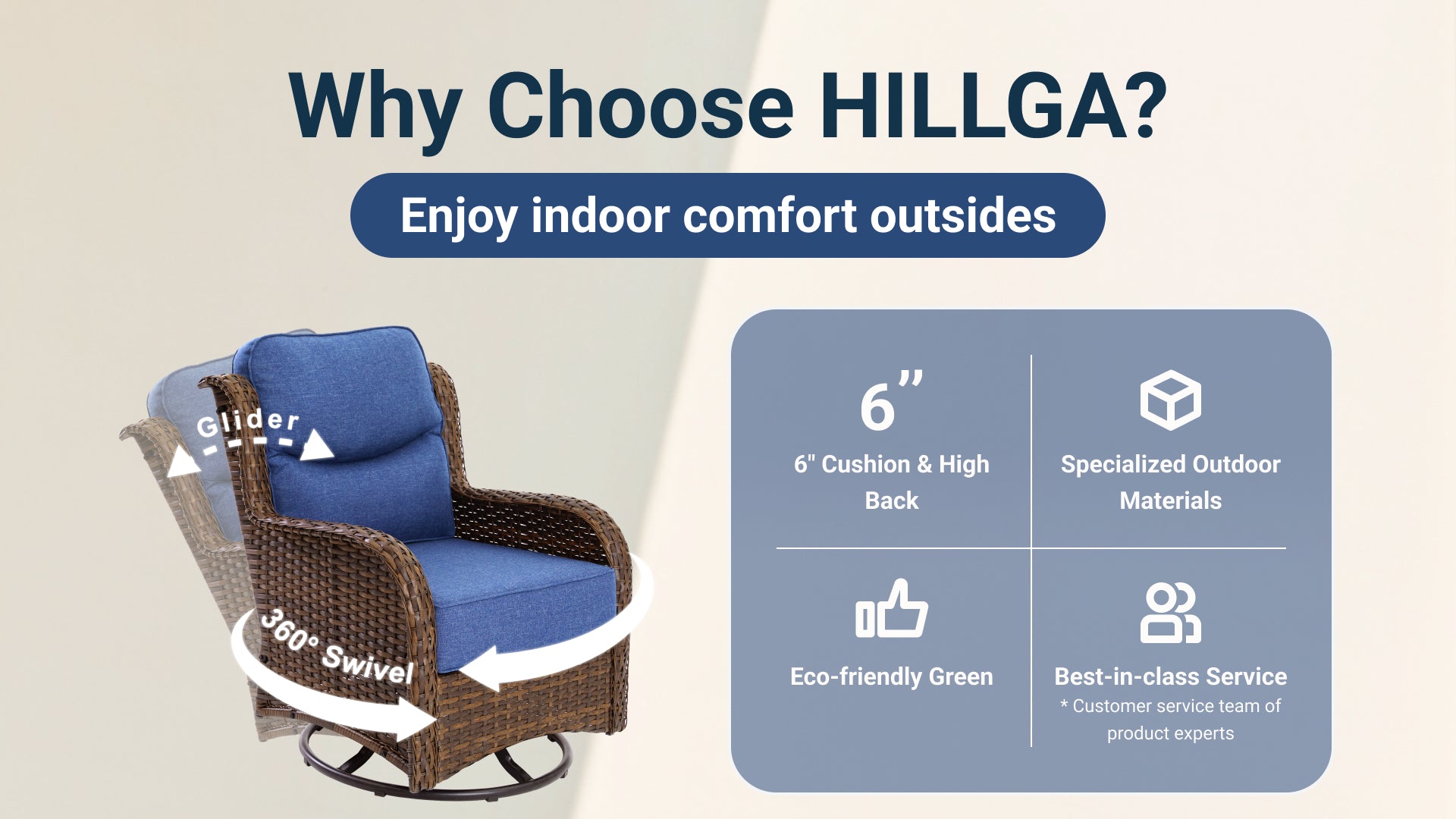 At Hillga, we take great pride in our outdoor furniture and we strive to bring you the best quality and worry-free service.