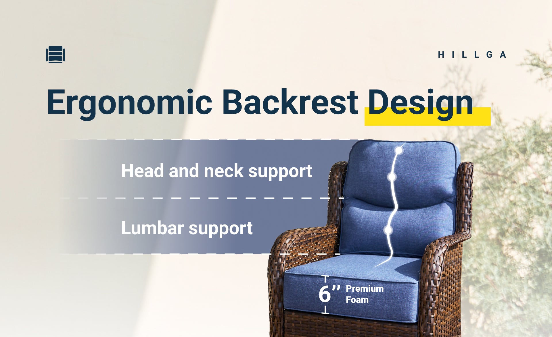- High backrest provides full shoulder and neck support, reducing fatigue during long lounging sessions.