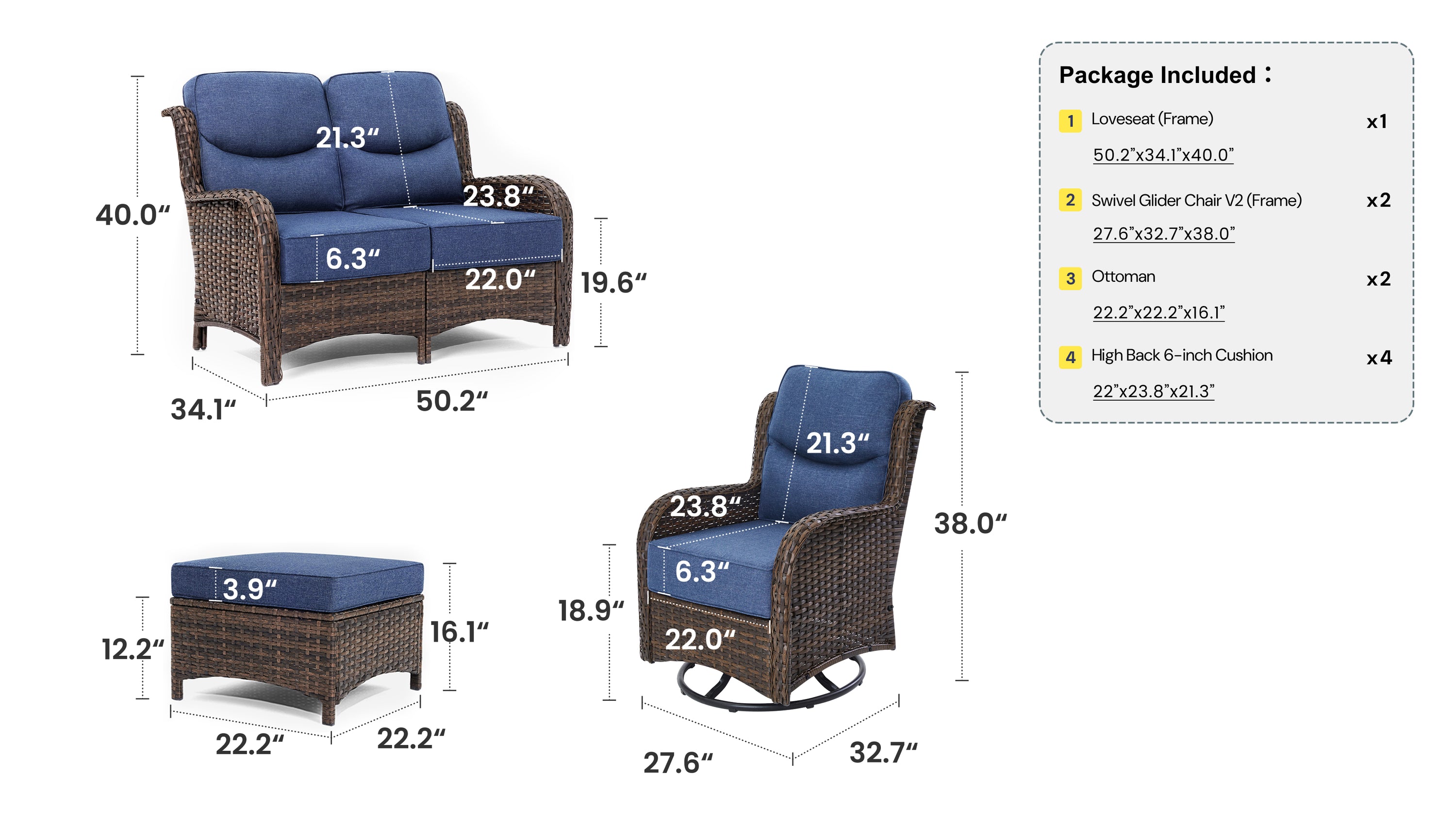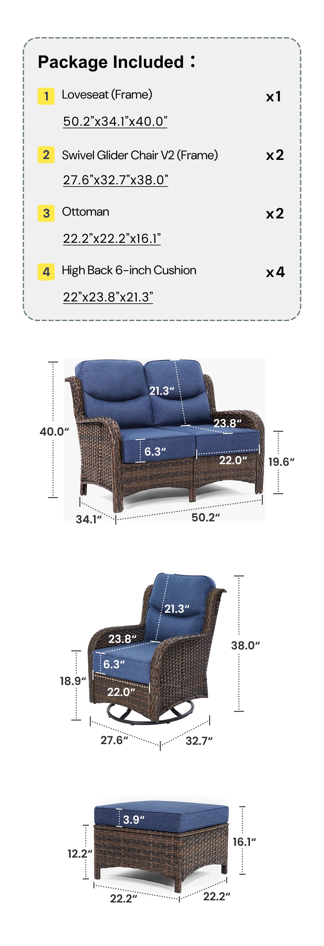 - 6-inch ultra-plush cushions with high-density 28D foam offer the perfect balance of softness and support.