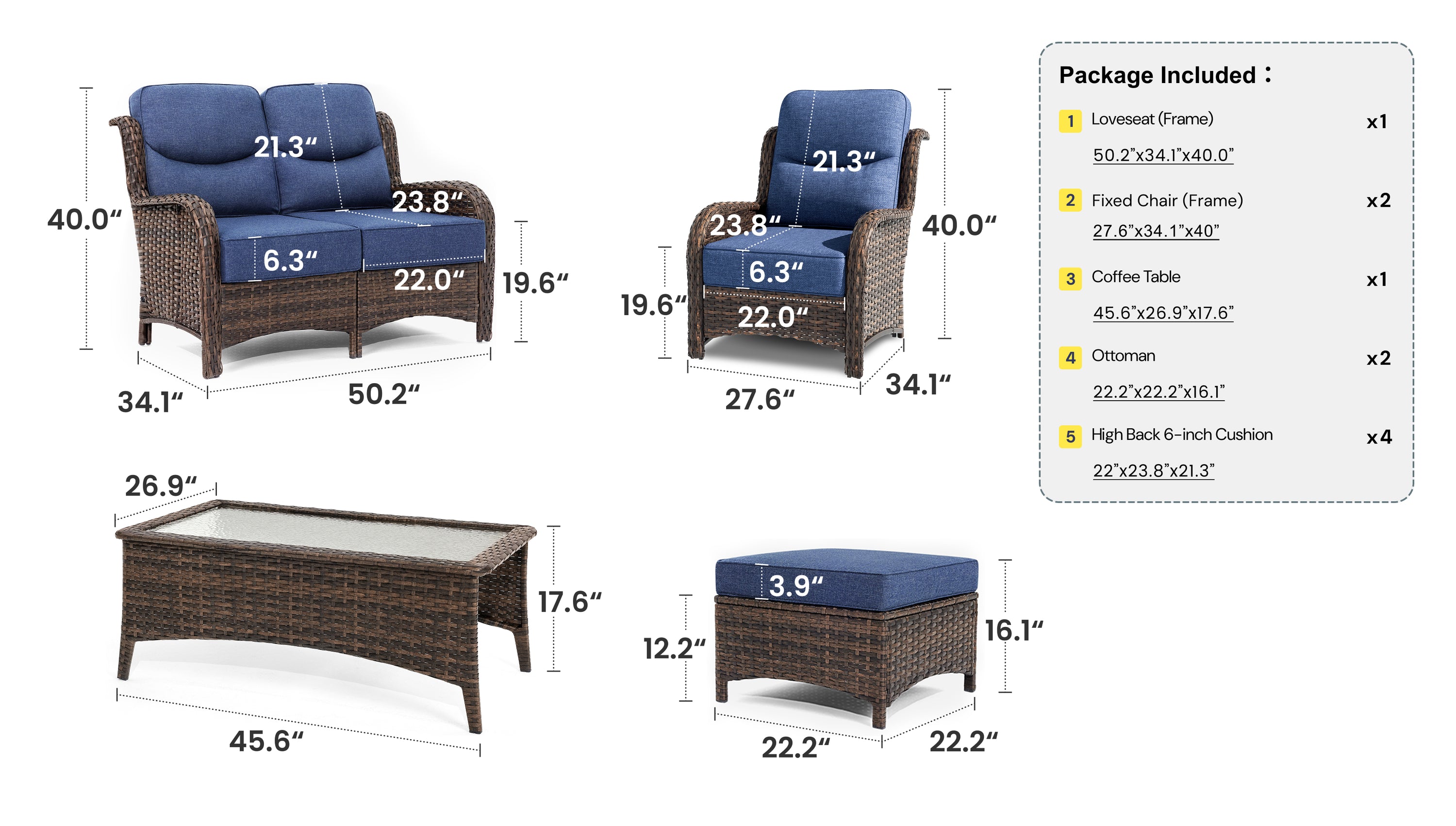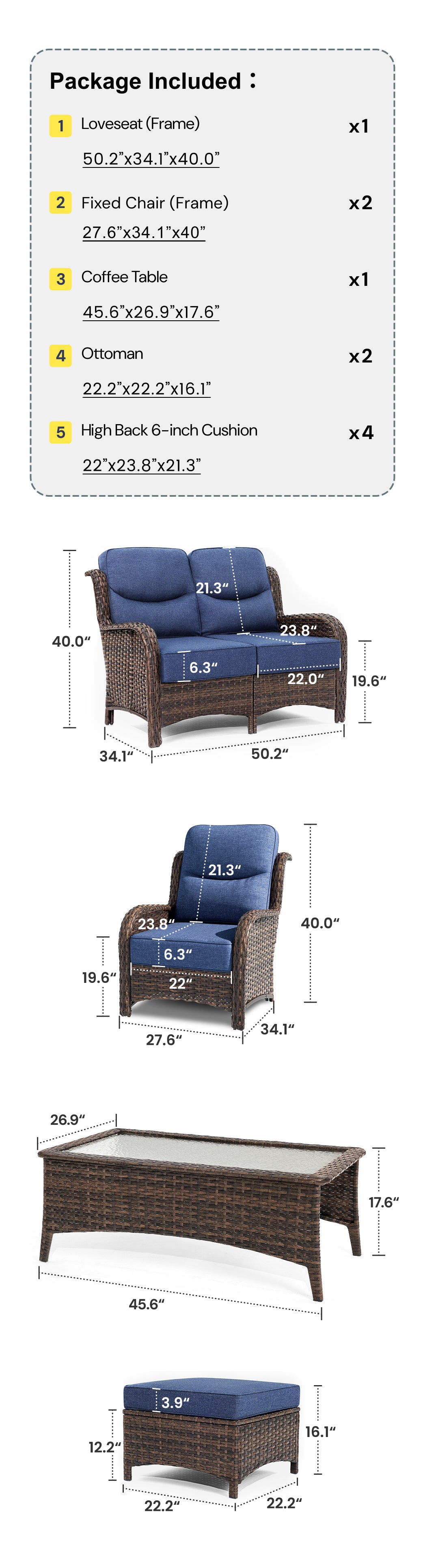 - 6-inch ultra-plush cushions with high-density 28D foam offer the perfect balance of softness and support.