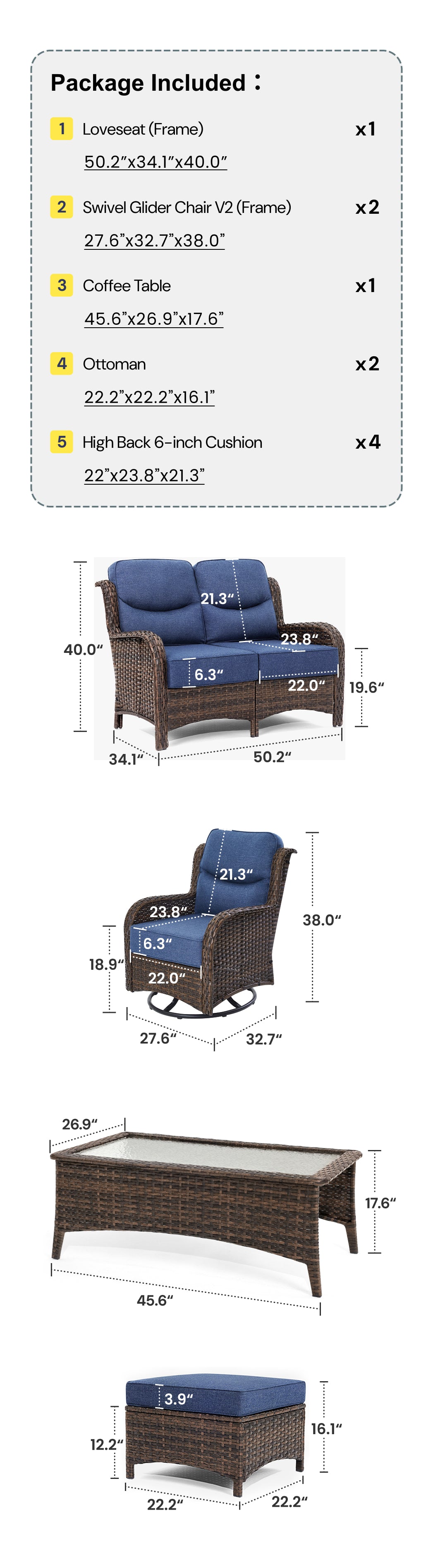 - 6-inch ultra-plush cushions with high-density 28D foam offer the perfect balance of softness and support.