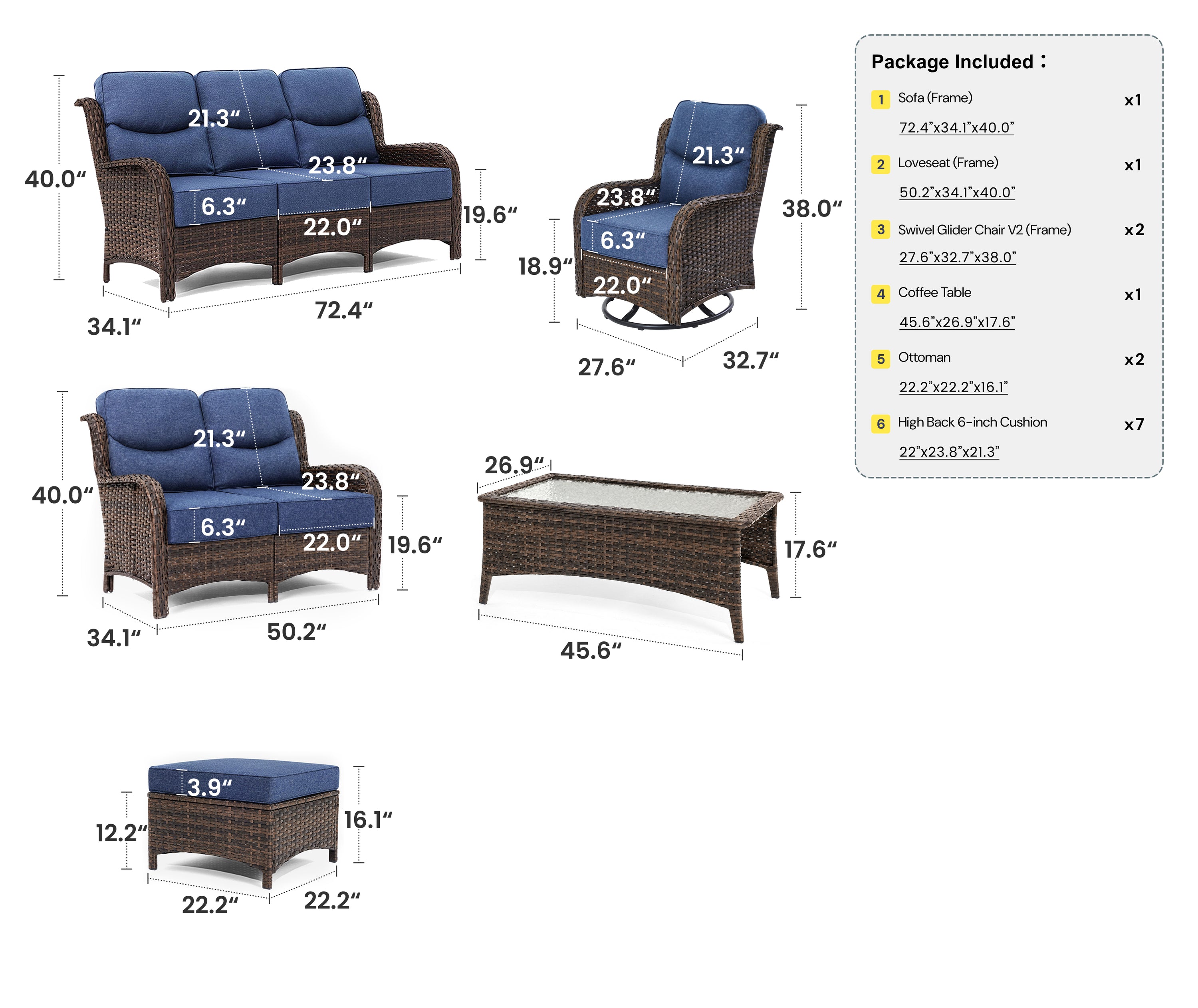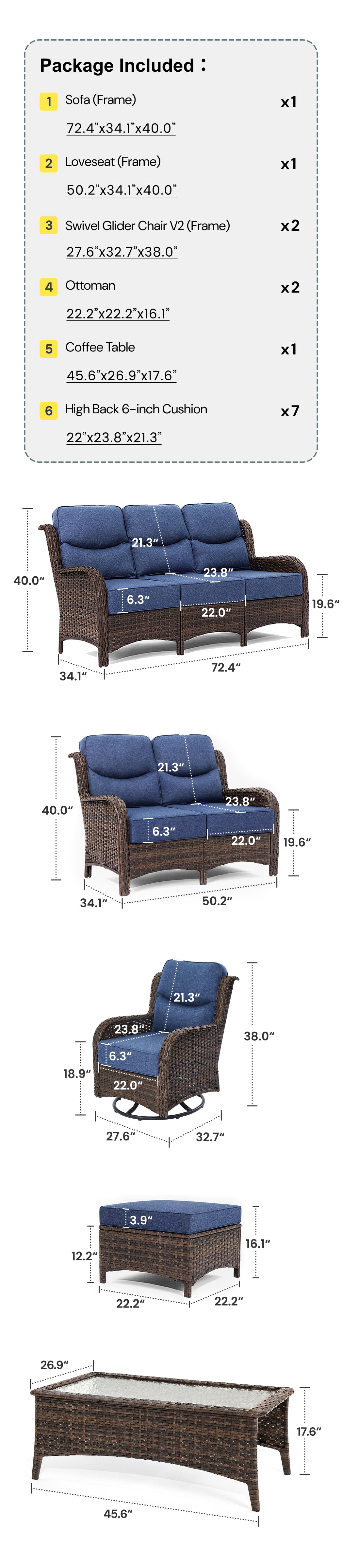 【Extra $300 OFF | CODE: BF300】Hawthorne 7 Piece Patio Wicker Furniture Set With 3 Seater Sofa And Loveseat