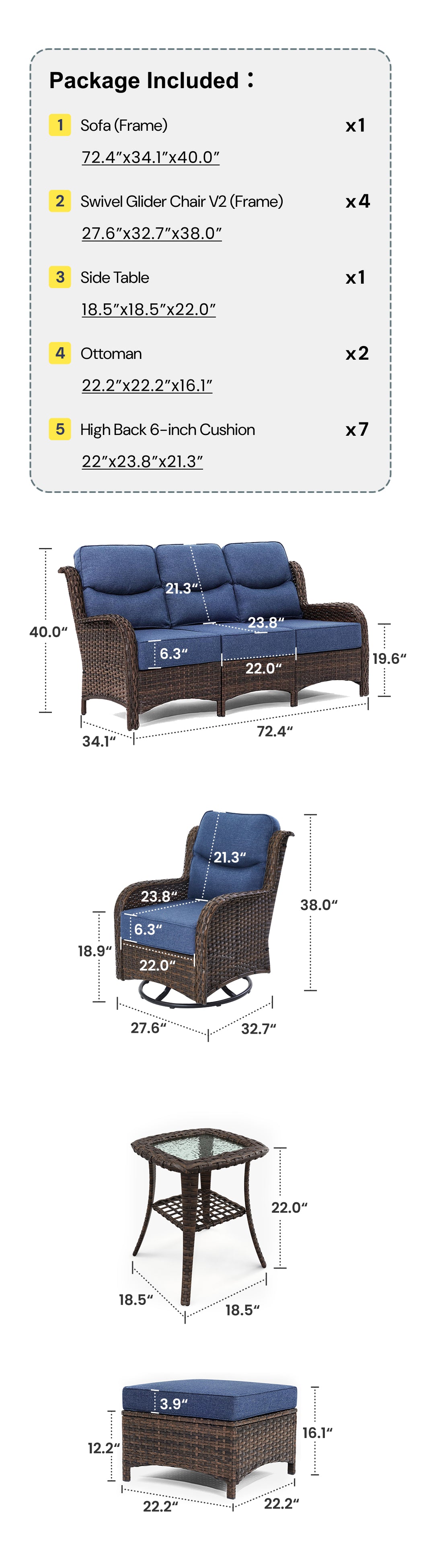 - 6-inch ultra-plush cushions with high-density 28D foam offer the perfect balance of softness and support.