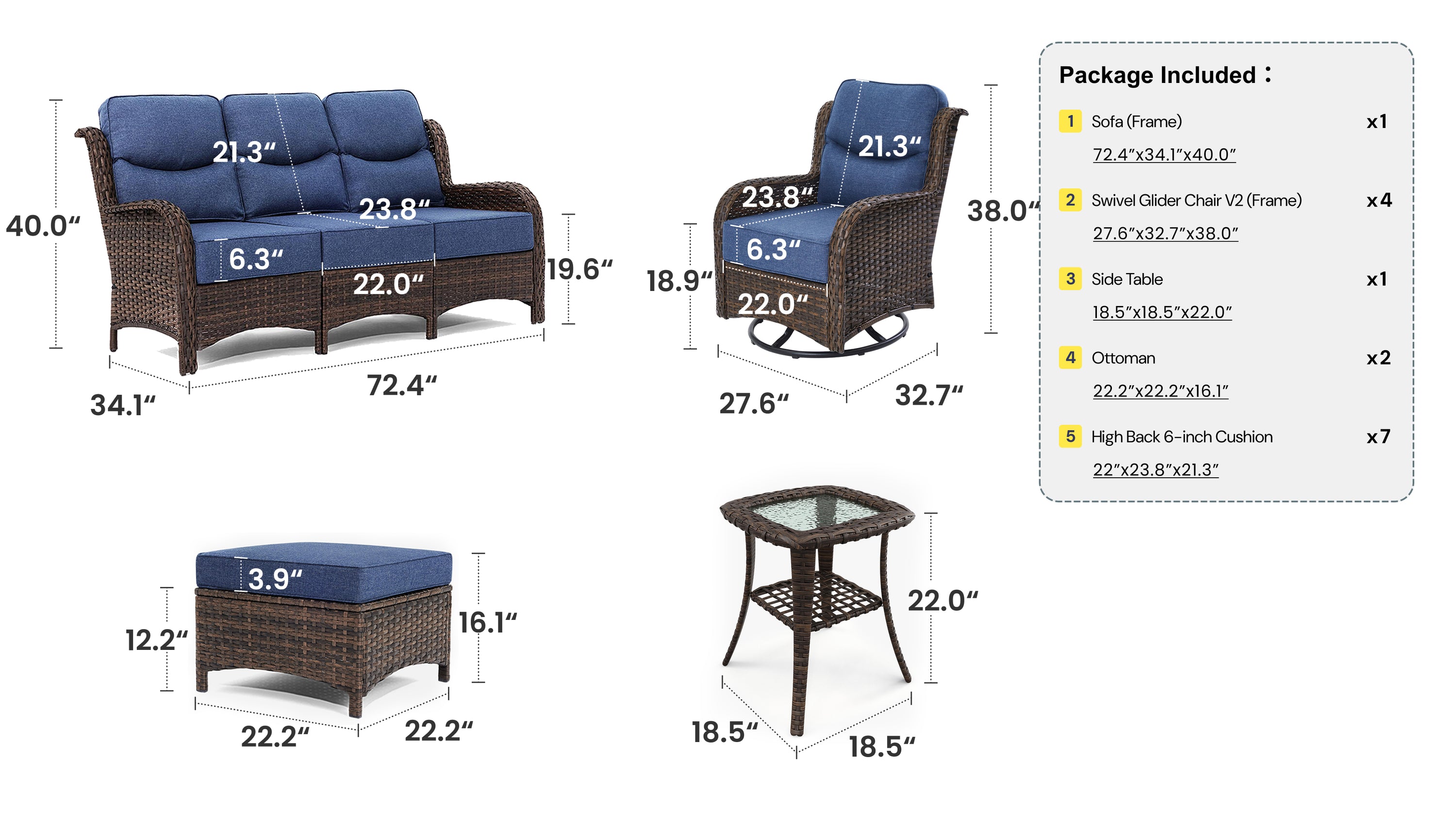 【Extra $300 OFF | CODE: BF300】Hawthorne 8 Piece Outdoor Wicker Sofa Set With Swivel Chairs & Ottomans For Backyard