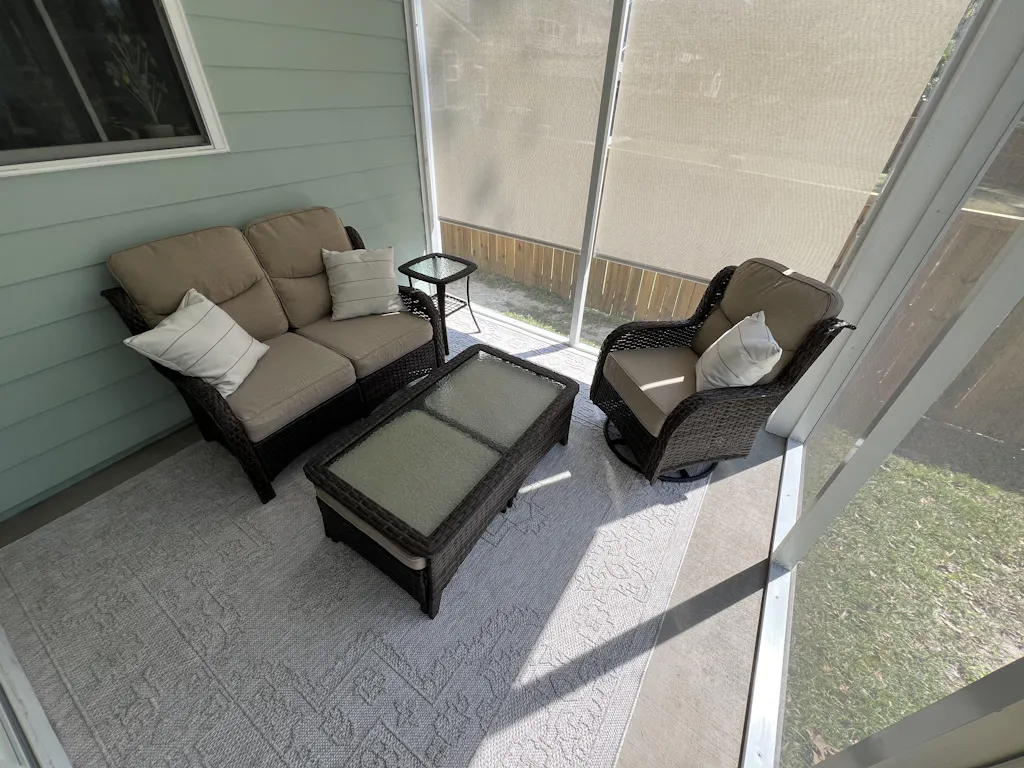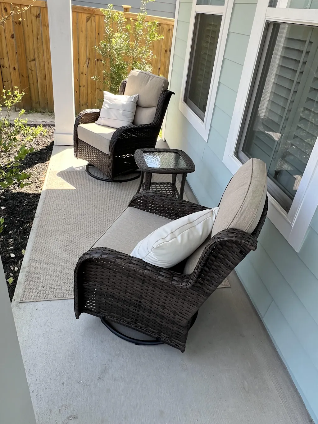 - Handwoven all-weather PE wicker resists rain, UV rays, and everyday wear.
