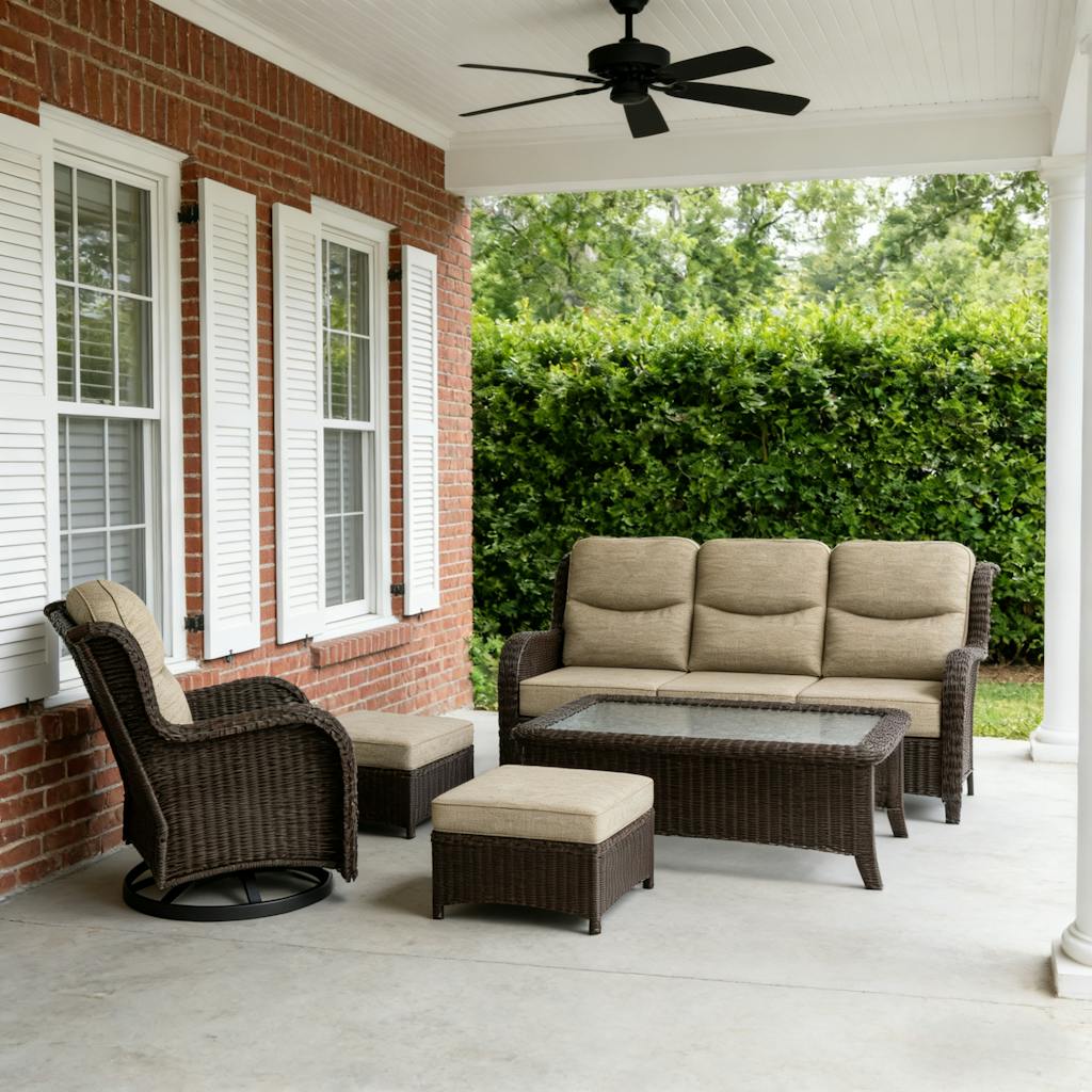 - Handwoven all-weather PE wicker resists rain, UV rays, and everyday wear.
