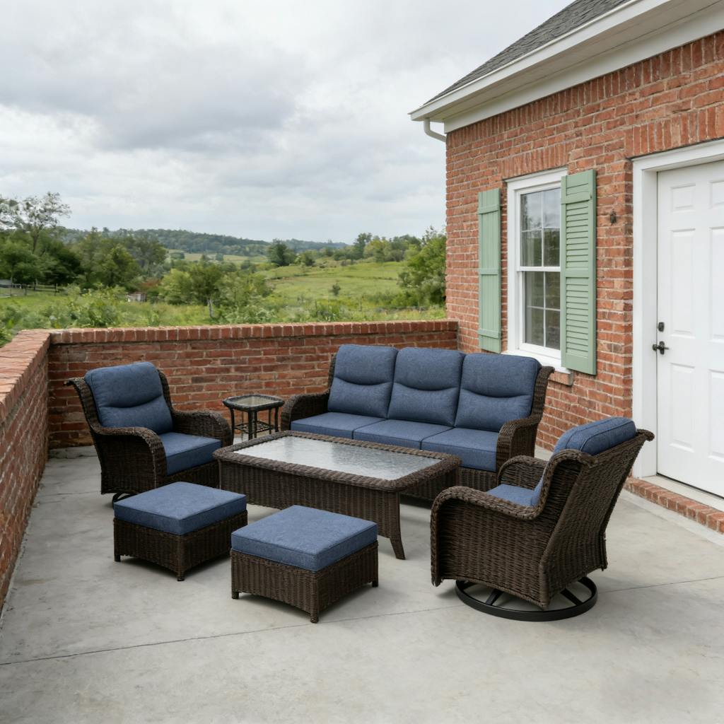 Ardenelle Luxury 7 Piece Patio Wicker Sofa Set With Ottomans, Tables And Covers