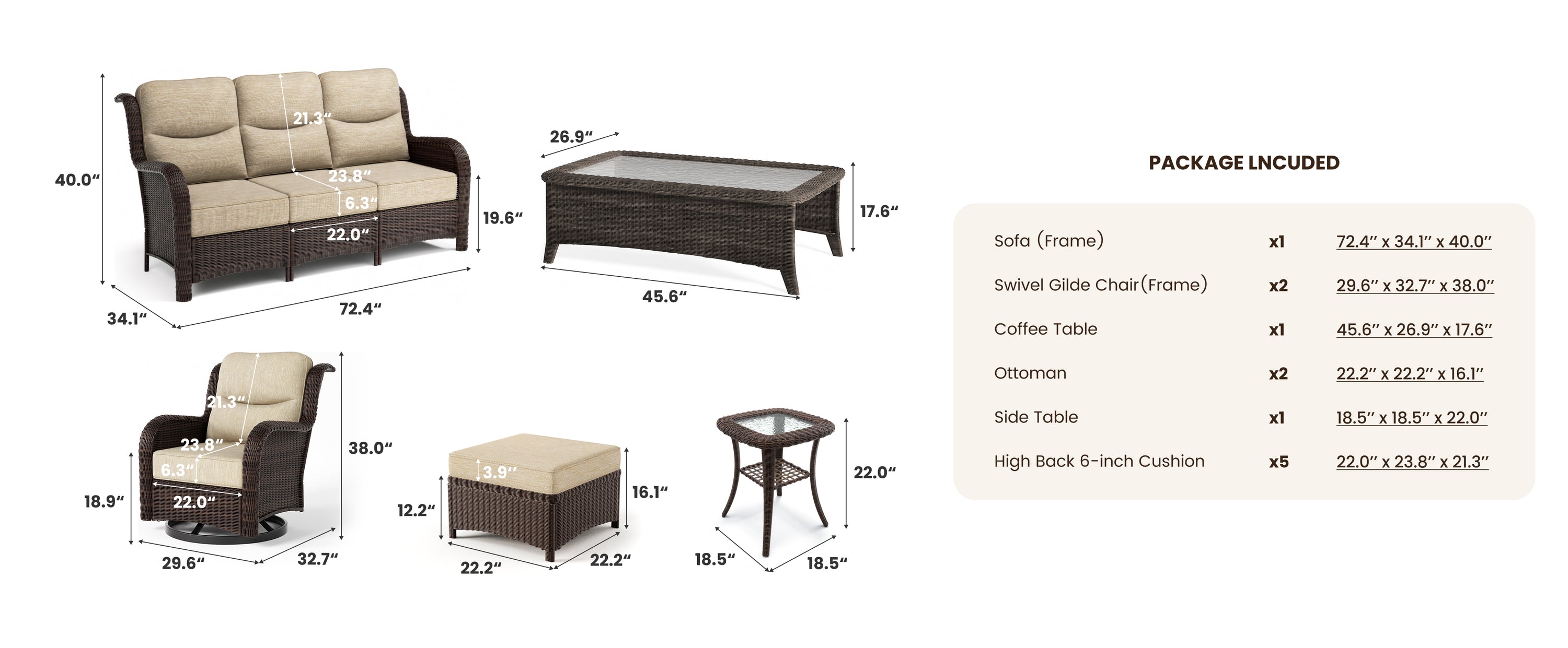 - 6-inch ultra-plush cushions with high-density 28D foam offer the perfect balance of softness and support.