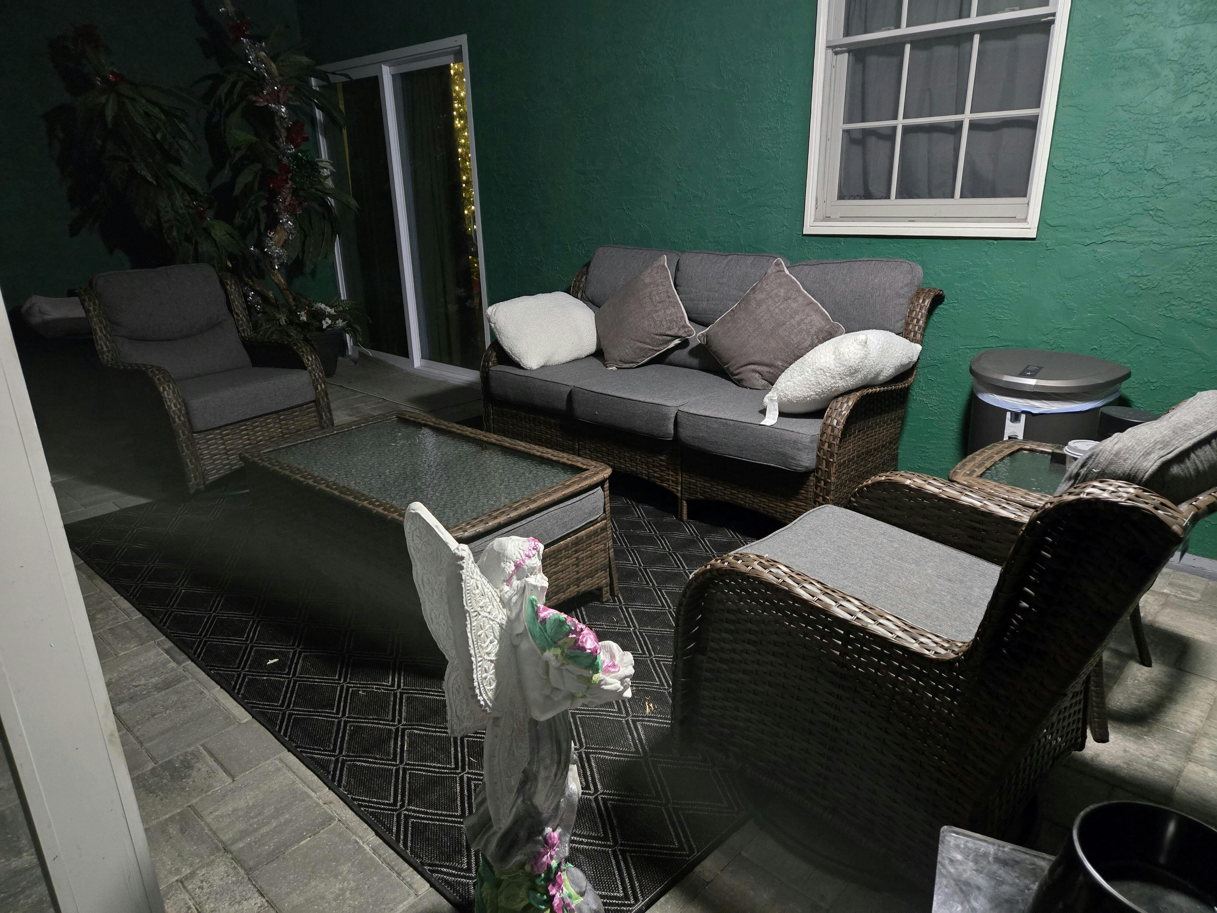 - Handwoven all-weather PE wicker resists rain, UV rays, and everyday wear.